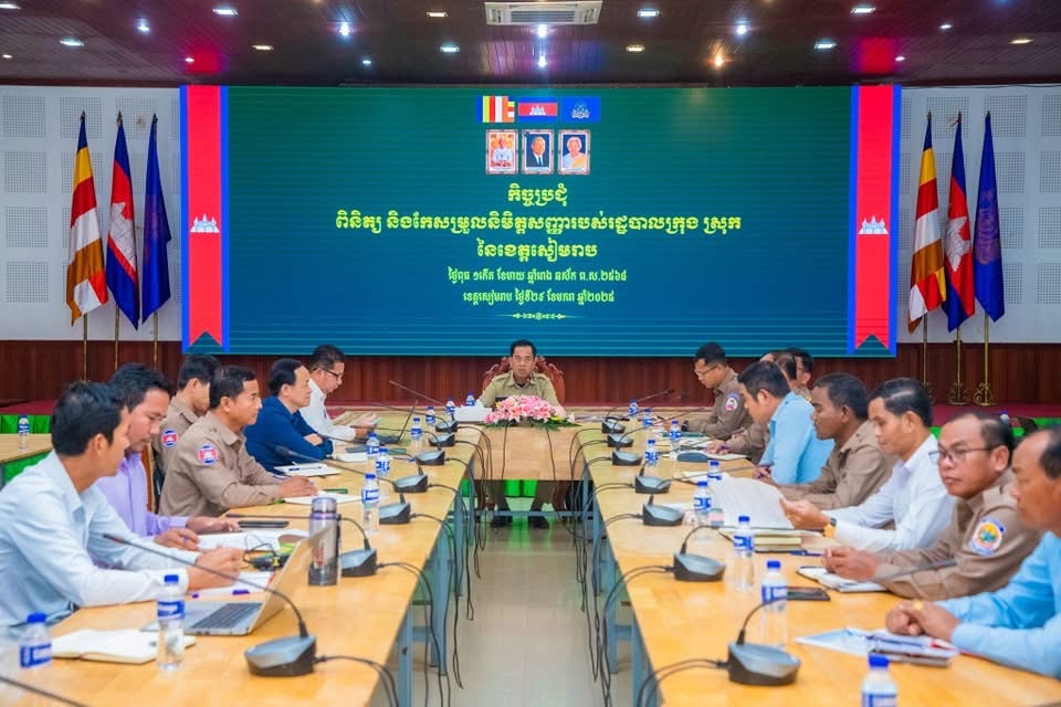 ខេត្តសៀមរាប៖ នៅរសៀលថ្ងៃទី២៩ ខែមករា ឆ្នាំ២០២៥ នៅសាលប្រជុំធំ សាលាខេត្តសៀមរាប បានរៀបចំកិច្ចប្រជុំពិនិត្យ និងកែសម្រួលនិមិត្តសញ្ញារបស់រដ្ឋបាលក្រុង ស្រុក នៃខេត្តសៀមរាប ក្រោមអធិបតីភាពលោក នាក់ ណេរ៉ុន អភិបាលរងខេត្ត តំណាងដ៏ខ្ពង់ខ្ពស់ ឯកឧត្តម ប្រាក់ សោភ័ណ អភិបាល នៃគណៈអភិបាលខេត្តសៀមរាប ដោយមានចូលរួមពីលោក លី វណ្ណៈ នាយករដ្ឋបាលសាលាខេត្ត ព្រមទាំងលោក លោកស្រី អភិបាល អភិបាលរងក្រុង ស្រុក នាយក នាយករដ្ឋបាលសាលាក្រុង ស្រុក និងប្រធានអនុប្រធានការិលា័យពាក់ព័ន្ធសរុបចំនួន៥៥នាក់ ស្រី ០១នាក់។