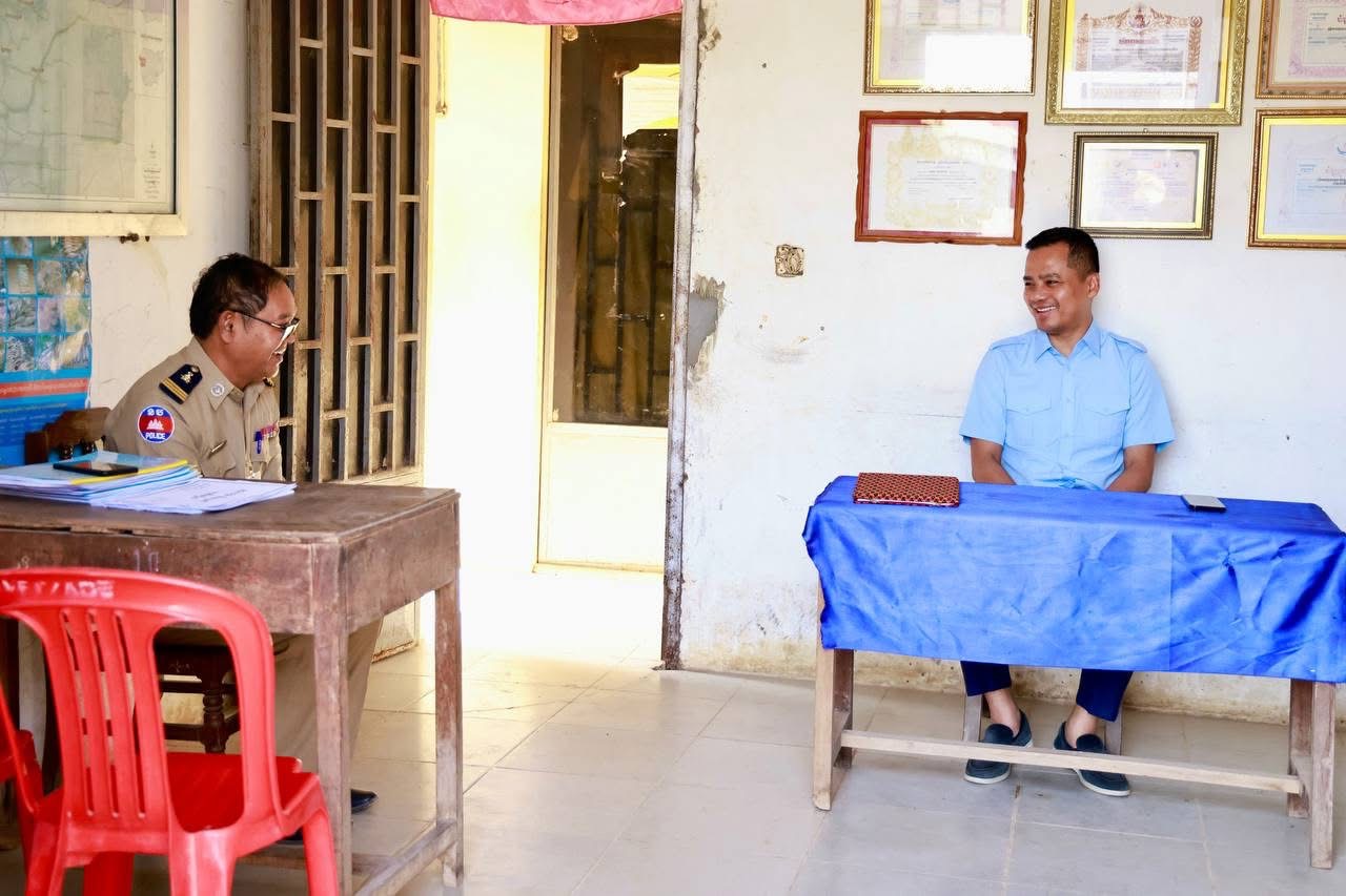 សូមអធ្យាស្រ័យម្ចាស់ផ្ទះដែលចូលមកលេងដោយពុំបានជូនដំណឹងមុន។ជជែកគ្នាមួយស្របក់ធំ ខ្ញុំបានស្ដាប់ និងទទួលព័ត៌មានច្រើនពីលោកនាយប៉ុស្តិ៍ និងមន្រ្តីប៉ុស្តិ៍ដែលប្រចាំការ លើការចាត់ចែងការងារប្រចាំថ្ងៃ ទំនាក់ទំនងជាមួយប្រជាពលរដ្ឋ ក្រុមប្រឹក្សាឃុំ ប្រជាការពារ និងបានស្វែងយល់អំពីបញ្ហាប្រឈម និងវិធីសាស្រ្តដោះស្រាយពាក់ព័ន្ធនឹងកិច្ចការសន្តិសុខ និងសណ្ដាប់ធ្នាប់សាធារណៈ។