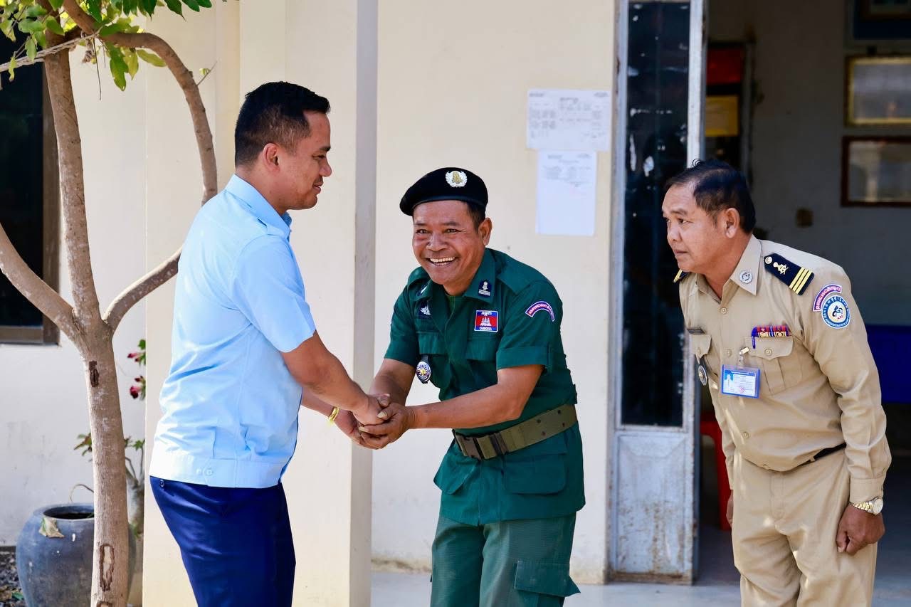 ខេត្តបាត់ដំបង៖ នាព្រឹកថ្ងៃសៅរ៍ ១១កើត ខែមាឃ ឆ្នាំរោង ឆស័ក ព.ស ២៥៦៨ ត្រូវវនឹងថ្ងៃទី០៨ ខែកុម្ភៈ ឆ្នាំ២០២៥ នេះ ឯកឧត្តមអភិសន្តិបណ្ឌិត ស សុខា ឧបនាយករដ្ឋមន្ត្រី រដ្ឋមន្ត្រីក្រសួងមហាផ្ទៃ បានអញ្ជើញចូលជួបសំណេះសំណាល និងពិនិត្យការងារមួយចំនួនដើម្បីស្វែងយល់អំពីការបំពេញការងារជាក់ស្ដែងរបស់មន្រ្តីនគរបាលជាតិ នៃប៉ុស្តិ៍នគរបាលរដ្ឋបាលពាមឯក ស្ថិតនៅឃុំពាមឯកស្រុកឯកភ្នំ ខេត្តបាត់ដំបង។