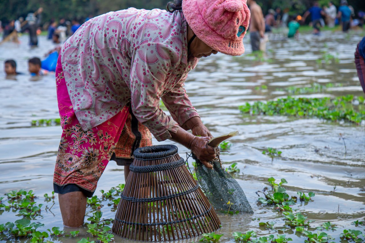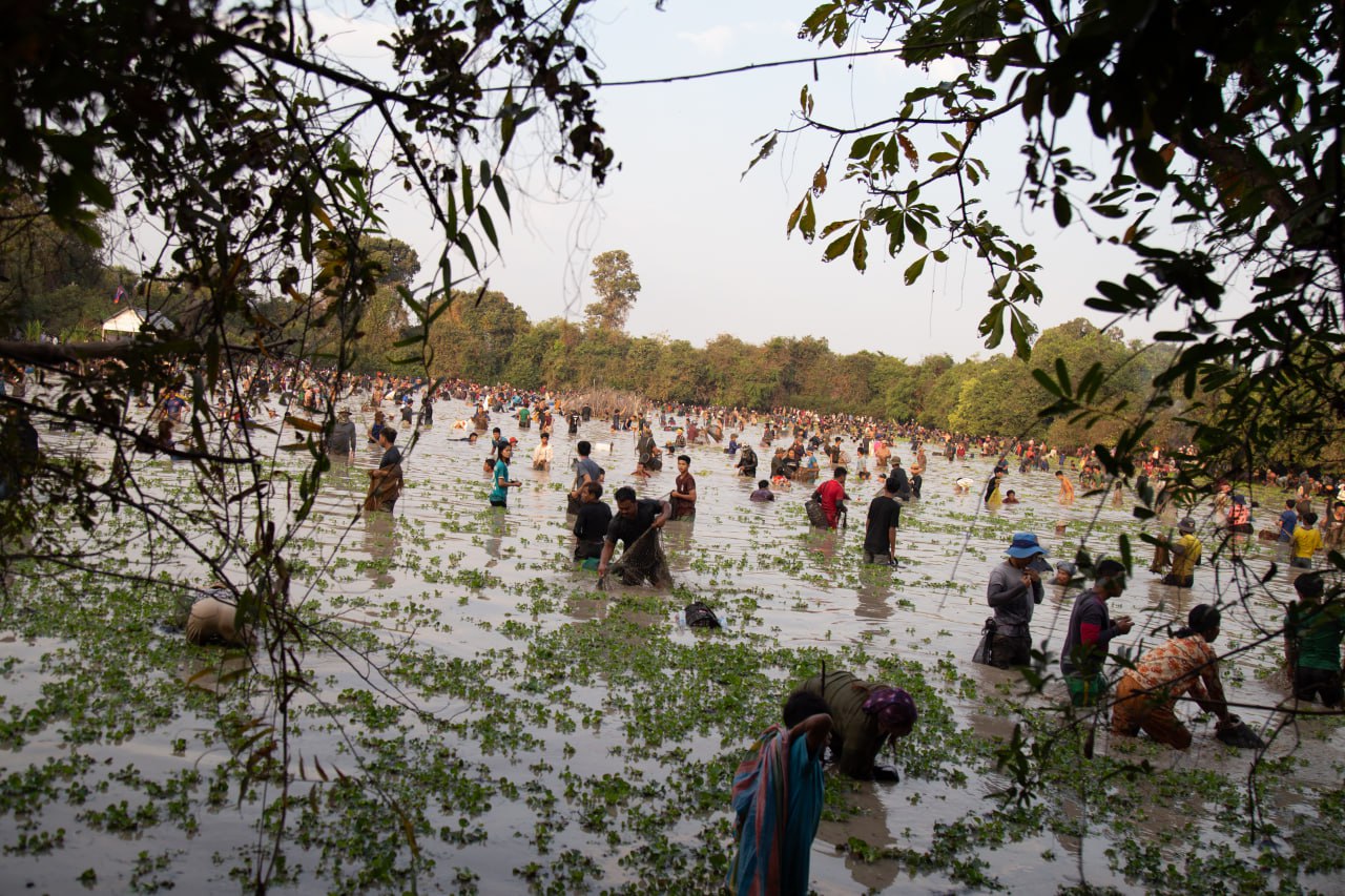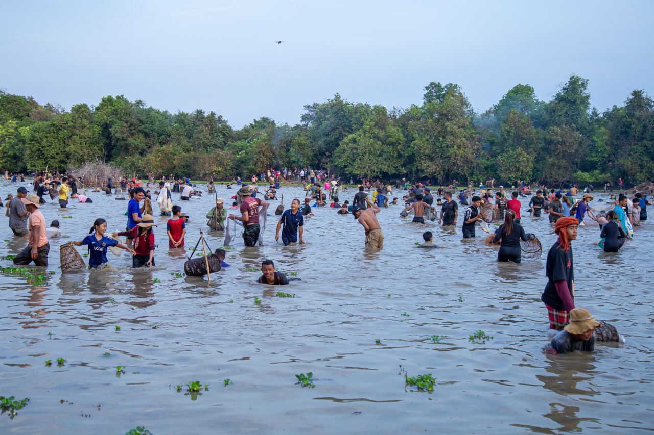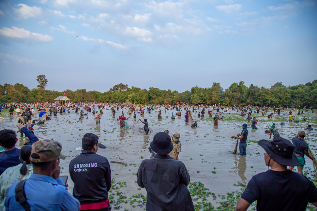 សៀមរាប.ពិធីចាប់ត្រីរួមគ្នាសម្រាប់ពិធីបុណ្យឡើងមាឃ គឺជាប្រពៃណី ទំនៀមទំលាប់មួយ ដែលបងប្អូនក្នុងតំបន់អង្គរ បានប្រកាន់យ៉ាងខ្ជាប់ខ្ជួននោះ តែងតែរួមគ្នាប្រារព្វជារៀងរាល់ឆ្នាំតពីបុរាណកាលមកមិនដែលខកខានឡើយ។ ក្នុងពិធីចាប់ត្រីនោះ នៅពេលព្រឹកព្រលឹមស្រាងៗ ប្រជាពលរដ្ឋមានចាស់ ក្មេង ប្រុស ស្រីជាច្រើនរយនាក់ ក្នុងដៃមានកាន់ សំណាញ់ អង្រុត ឈ្នាង និងទ្រុង បានមកជួបជុំគ្នា ដោយគណៈកម្មការបានកំណត់ការជួបជុំគ្នា និងចុះចាប់ត្រី នៅម៉ោង៧ព្រឹក ដែលមានបាញ់កាំជ្រួចធ្វើជាសញ្ញាផង ។ នៅចុងសប្តាហ៍ព្រឹកថ្ងៃទី៩ ខែកុម្ភៈឆ្នាំ២០២៥នេះ មិនខុសពីរៀងរាល់ឆ្នាំប៉ុន្មានឡើយ គណៈកម្មការរៀបចំកម្មវិធី បានប្រកាសជាសាធារណៈ ឲ្យចាប់ត្រីរួមគ្នានៅក្នុងបឹងសហគមន៍ ស្ថិតនៅភូមិបង្កោង ឃុំអំពិល ស្រុកប្រាសាទបាគង ជាតំបន់រមណីដ្ឋានអង្គរ ខេត្ដសៀមរាប ដោយមានអ្នកចូលរួមមកពីគ្រប់ទិសទីយ៉ាងច្រើនកុះករ ។