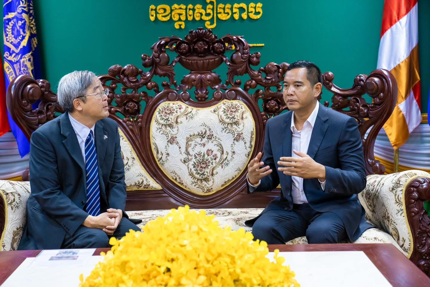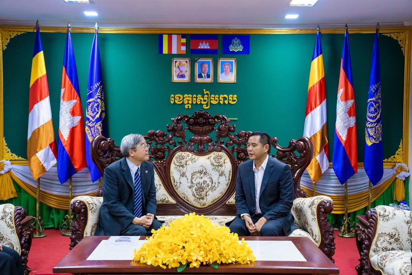 ខេត្តសៀមរាប៖ នាថ្ងៃទី២៨ ខែសីហា ឆ្នាំ២០២៥ ឯកឧត្តម ប្រាក់ សោភ័ណ អភិបាល នៃគណៈអភិបាលខេត្តបានអនុញ្ញាតឱ្យលោកយ៉ូណេហ្សាវ៉ា អាត់ស៊ូស៉ី ប្រធានការិយាល័យកុងស៊ុលជប៉ុននៅខេត្តសៀមរាបចូលជួបសម្តែងការគួរសម នៅបន្ទប់ប្រជុំសាលាខេត្ត។