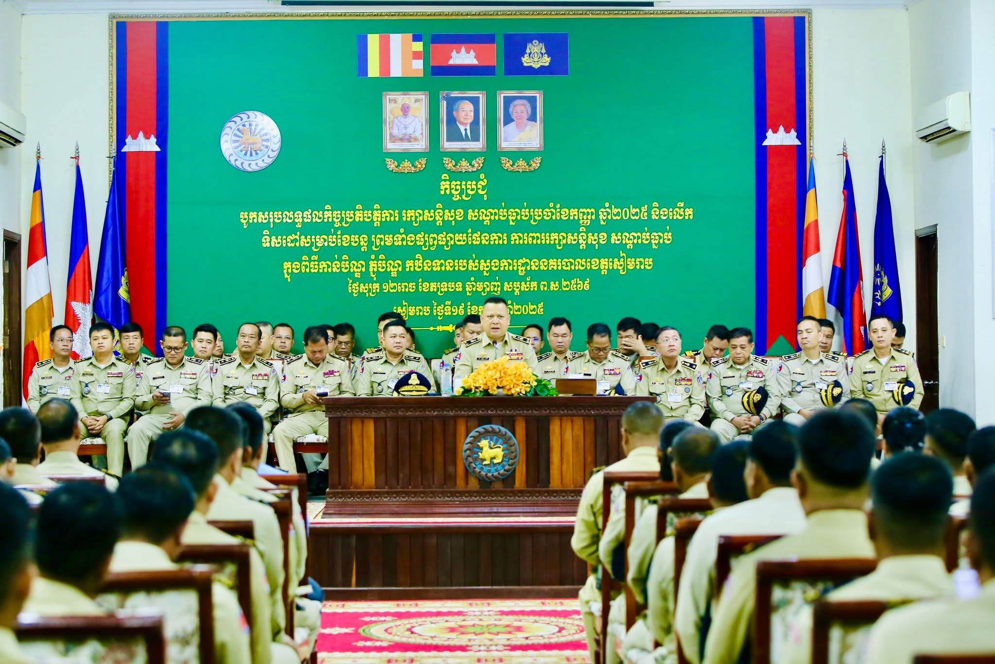 ខេត្តសៀមរាប៖ នៅព្រឹកថ្ងៃសុក្រ ១២រោច ខែភទ្របទ ឆ្នាំម្សាញ់ សប្តស័ក ពុទ្ធសករាជ ២៥៦៩ ត្រូវនឹងថ្ងៃទី១៩ ខែកញ្ញា ឆ្នាំ២០២៥វេលាម៉ោង០៨និង០០នាទី នៅសាលប្រជុំស្នងការដ្ឋាននគរបាលខេត្ត ដោយអនុវត្តតាមការចង្អុលដឹកនាំដ៏ខ្ពង់ខ្ពស់ ពី ឯកឧត្តម នាយឧត្តមសេនីយ៍ ស ថេត អគ្គស្នងការនគរបាលជាតិ លោកឧត្ដមសេនីយ៍ទោ ហួត សុធី ស្នងការ នៃស្នងការដ្ឋាននគរបាលខេត្ដសៀមរាប បានអញ្ជើញដឹកនាំកិច្ចប្រជុំបូកសរុបលទ្ធផលកិច្ចប្រតិបត្តិការ រក្សាសន្តិសុខ សណ្ដាប់ធ្នាប់ប្រចាំខែកញ្ញា ឆ្នាំ២០២៥ និងលើកទិសដៅសម្រាប់ខែបន្ត ព្រមទាំងផ្សព្វផ្សាយផែនការ ការពាររក្សាសន្តិសុខ សណ្តាប់ធ្នាប់ ក្នុងពិធីកាន់បិណ្ឌ ភ្ជុំបិណ្ឌ កឋិនទានរបស់ស្នងការដ្ឋាននគរបាលខេត្តសៀមរាប។ ដោយបានការអញ្ជើញចូលរួមពី អង្គភាពនគរបាលការពារបេតិកភណ្ឌ អង្គភាពនគរបាលទេសចរណ៍ លោក–លោកស្រីស្នងការរងទាំងអស់ លោកនាយការិយាល័យទាំង៣៣ លោកអធិការនគរបាលក្រុង–ស្រុកទាំង១៣ លោកនាយប៉ុស្តិ៍នគរបាលរដ្ឋបាលទាំង១០០ និងលោកនាយប៉ុស្ដិ៍ការពារទាំង៦ ចំណុះឲ្យការិយាល័យនគរបាលការពារបេតិកភណ្ឌផងដែរ។
