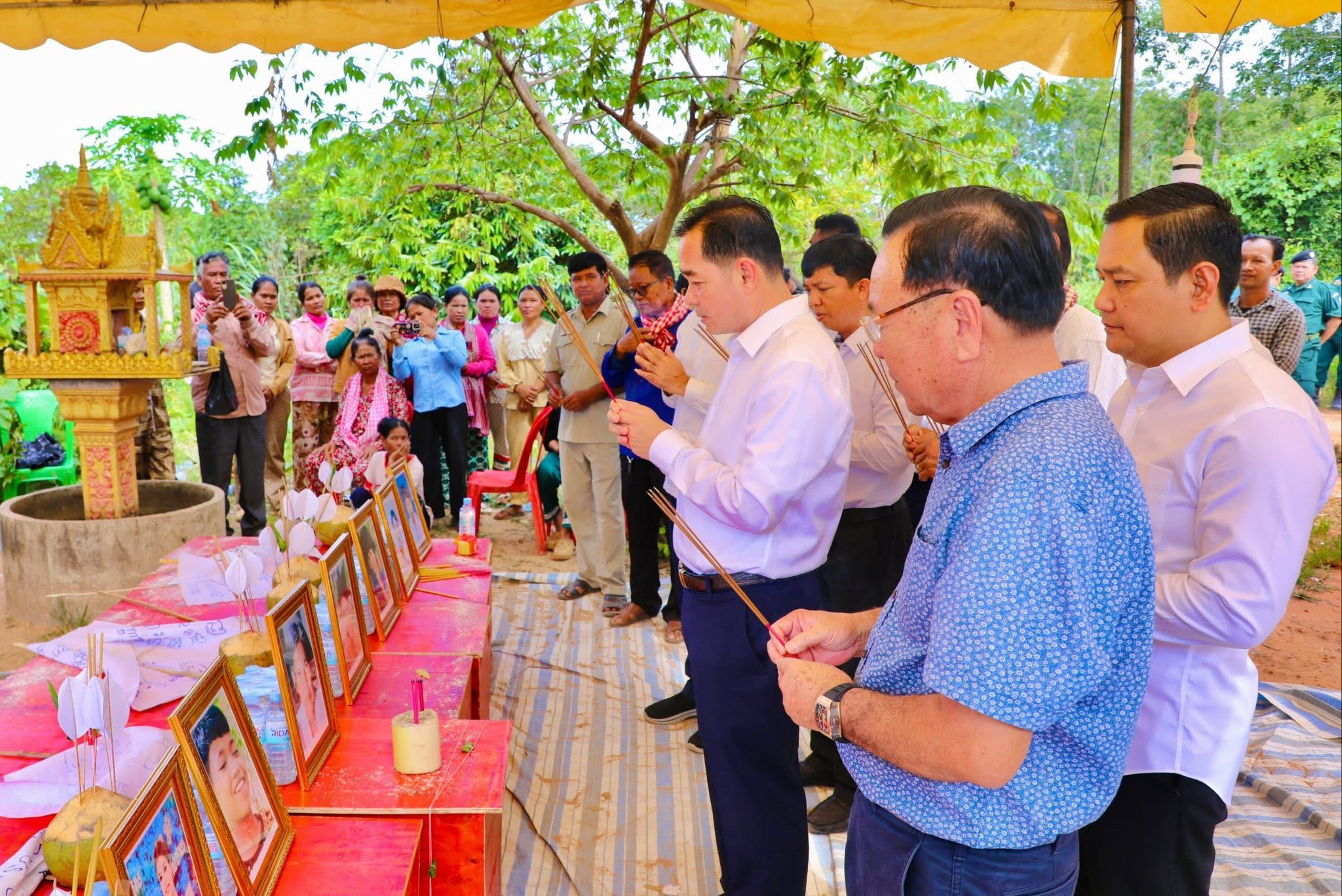 ខេត្តកំពង់ចាម៖ ឯកឧត្ដមអ៊ុនចាន់ដាអភិបាលនៃគណៈអភិបាលខេត្តកំពង់ចាមនាព្រឹកថ្ងៃចន្ទ ទី២៤ ខែវិច្ឆិកា ឆ្នាំ២០២៥រួមដំណើរដោយថ្នាក់ដឹកនាំ និងមន្ត្រីរាជការ នៃរដ្ឋបាលខេត្ត, កងកម្លំាងមានសមត្ថកិច្ច, អាជ្ញាធរមូលដ្ឋាន និងលោក អគ្គនាយកក្រុមហ៊ុន ហេងឡុង (ចំការកៅស៊ូបឹងកេត)  បានអញ្ជើញចូលរួមរំលែកទុក្ខដល់គ្រួសារព រងគ្រោះដោយអំពើឃាតកម្មដ៏សាហាវយង់ឃ្នងដែលបានកេីតឡេីងលេីប្រជាពលរដ្ឋនិងកុមារ បណ្តាលអោយបាត់បង់ជីវិតមនុស្ស ចំនួន ៩នាក់ស្ថិតក្នុងភូមិពោនឃុំទួលសំបួរស្រុកស្ទឹងត្រង់ខេត្តកំពង់ចាមកាលពីព្រឹកព្រលឹមថ្ងៃទី២៣ខែវិច្ឆិកាឆ្នាំ២០២៥។