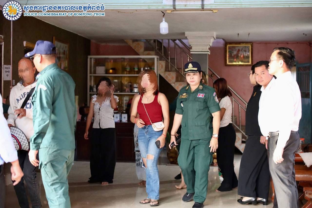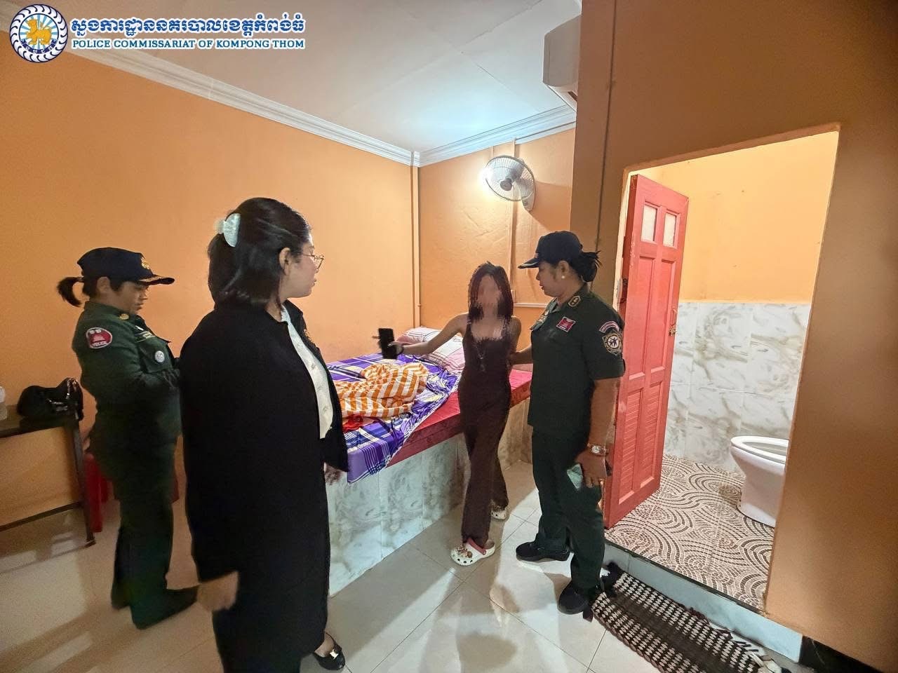 ខេត្តកំពង់ធំ៖ កម្លាំងនគរបាល ការិយាល័យប្រឆាំងការជូញដូរមនុស្សនិងការពារអនីតិជន បង្ក្រាបករណី សញ្ចារកម្មមួយកន្លែង ដែកពួនជ្រក ក្នុងហាងខារ៉ាអូខេមួយកន្លែង នៅស្រុកបារាយណ៍ ។ អនុវត្តតាមការចង្អុលដឹកនាំ ដ៏ខ្ពង់ខ្ពស់របស់ឯកឧត្ដម នាយឧត្ដមសេនីយ៍ ស ថេត អគ្គស្នងការនគរបាលជាតិ ក្រោមការបញ្ជាដឹកនាំពីលោកឧត្ដមសេនីយ៍ទោ ហេង សុផល ស្នងការនគរបាលខេត្តកំពង់ធំ ។