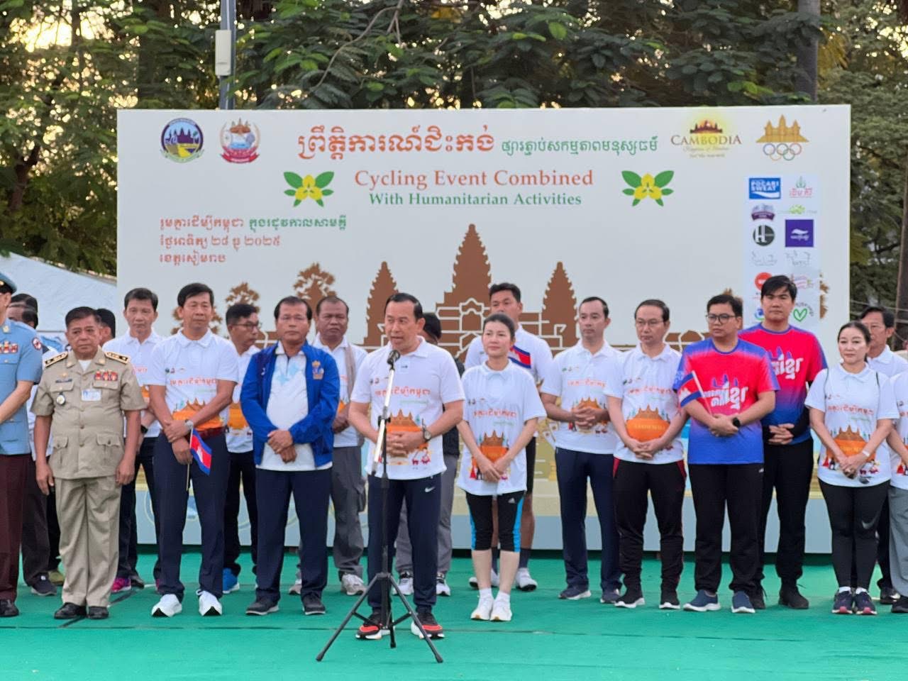 ខេត្តសៀមរាប៖ ក្រសួងទេសចរណ៍ សហការជាមួយរដ្ឋបាលខេត្តសៀមរាប បានរៀបចំព្រឹត្តិការណ៍ជិះកង់ផ្សារភ្ជាប់នឹងសកម្មភាពមនុស្សធម៌ ក្រោមប្រធានបទ « រួមគ្នាដើម្បីកម្ពុជា ក្នុងរដូវកាលសាមគ្គី» បានទាក់ទាញបងប្អូនប្រជាពលរដ្ឋ ទេសចរជាតិ និងអន្តរជាតិប្រមាណ២ពាន់នាក់ មកចូលរួមដើម្បីបង្ហាញអបអសាទរទិវាសន្តិភាពកម្ពុជា និង លើកស្ទួយវិស័យទេសចរណ៍ កាលពីព្រឹកថ្ងៃទី២៨ ខែធ្នូ ឆ្នាំ២០២៥ លើទឹកដីប្រវត្តិសាស្ត្រសៀមរាប.អង្គរ។