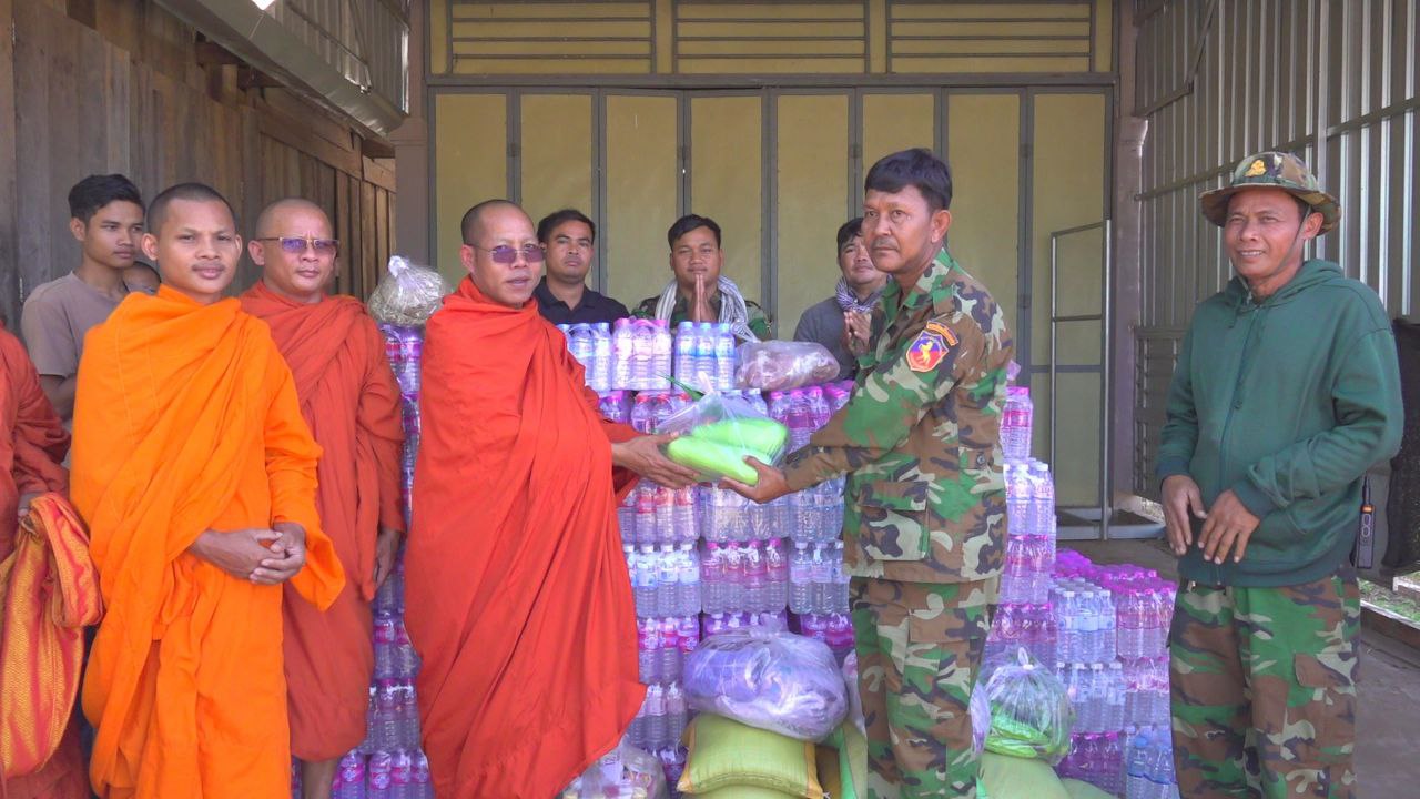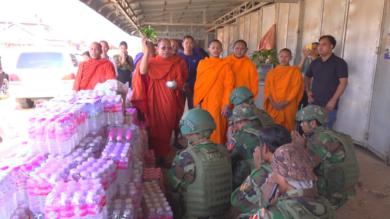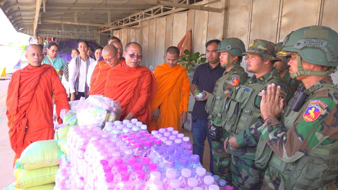 សៀមរាប៖ ព្រះសង្ឃនិងសប្បុរសជនក្នុងក្រុងខេត្តសៀមរាបដឹកនាំដោយព្រះយសោធរញាណ ឡោម សុឈាត ព្រះរាជាគណកិត្តិយស និង ជាព្រះគ្រូចៅអធិការវត្តព្រះសិអារ្យ កាលពីថ្ងៃអាទិត្យទី២៩ ខែធ្នូ ឆ្នាំ២០២៥នេះ បាននិមន្តចុះសួរសុខទុក្ខ និងនាំយកគ្រឿងឧបភោគបរិភោគរួមជាមួយនិងបច្ច័យមួយចំនួនដែលបានមកពីចៅអធិការវត្តនិងសប្បុរសជនជិតឆ្ងាយមួយចំនួន នៅក្នុងក្រុងសៀមរាប សម្រាប់ចែកជូនកងទ័ព ដែលកំពុងឈរជើងការពារខ្សែបន្ទាត់ព្រំដែន ក្នុងខេត្តព្រះវិហារ។