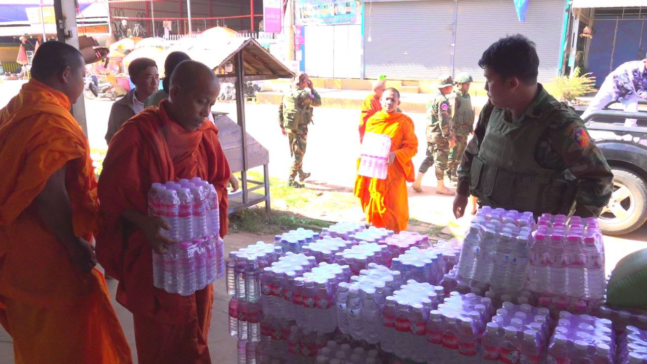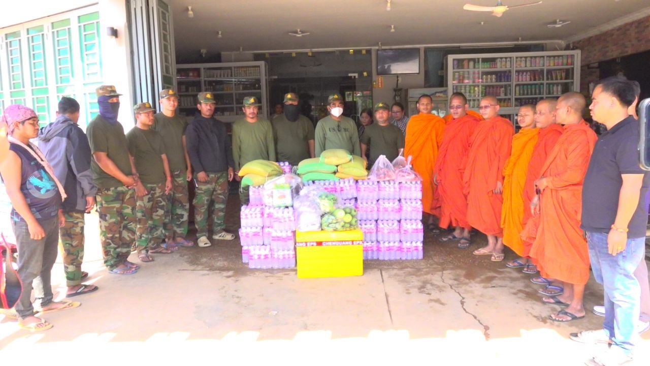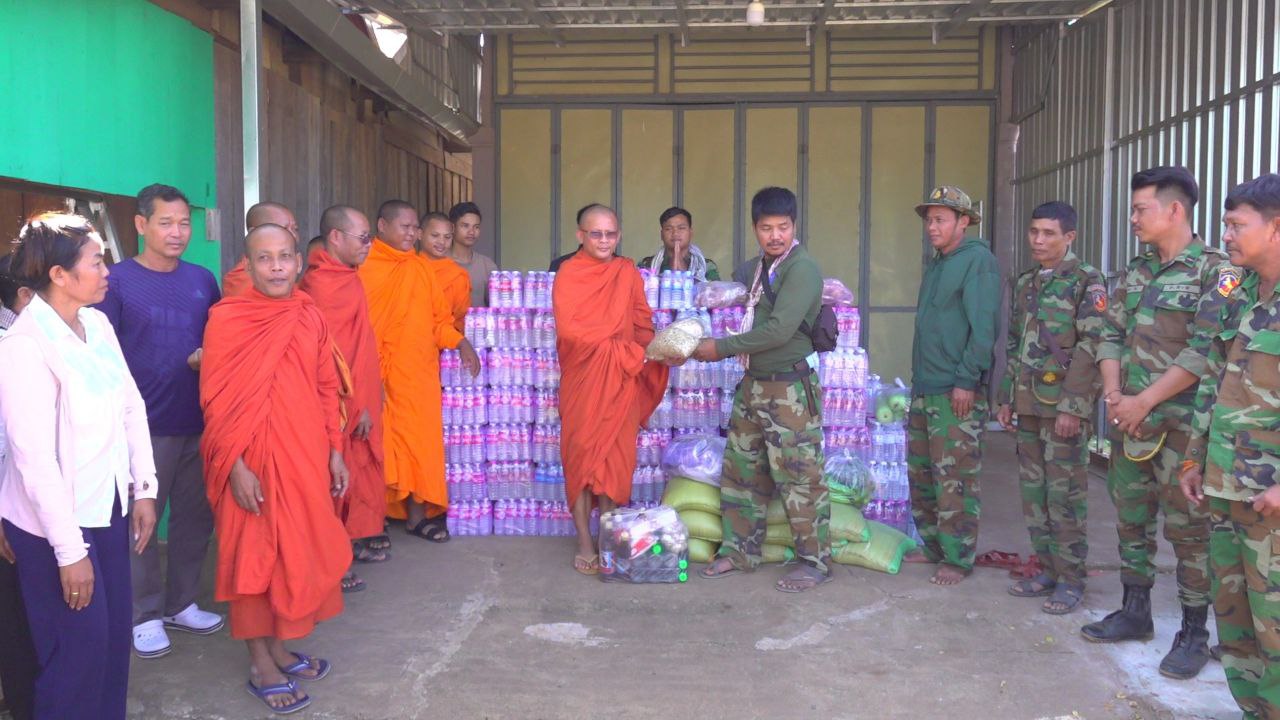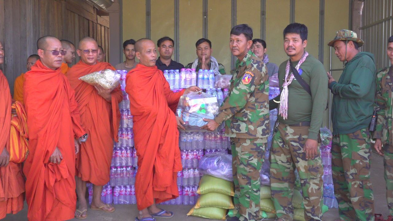 សៀមរាប៖ ព្រះសង្ឃនិងសប្បុរសជនក្នុងក្រុងខេត្តសៀមរាបដឹកនាំដោយព្រះយសោធរញាណ ឡោម សុឈាត ព្រះរាជាគណកិត្តិយស និង ជាព្រះគ្រូចៅអធិការវត្តព្រះសិអារ្យ កាលពីថ្ងៃអាទិត្យទី២៩ ខែធ្នូ ឆ្នាំ២០២៥នេះ បាននិមន្តចុះសួរសុខទុក្ខ និងនាំយកគ្រឿងឧបភោគបរិភោគរួមជាមួយនិងបច្ច័យមួយចំនួនដែលបានមកពីចៅអធិការវត្តនិងសប្បុរសជនជិតឆ្ងាយមួយចំនួន នៅក្នុងក្រុងសៀមរាប សម្រាប់ចែកជូនកងទ័ព ដែលកំពុងឈរជើងការពារខ្សែបន្ទាត់ព្រំដែន ក្នុងខេត្តព្រះវិហារ។
