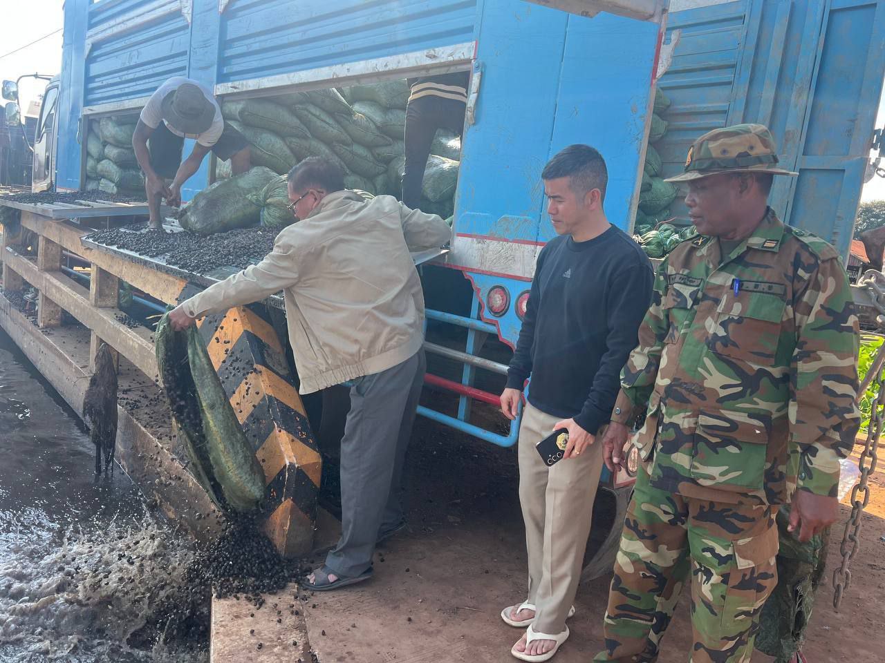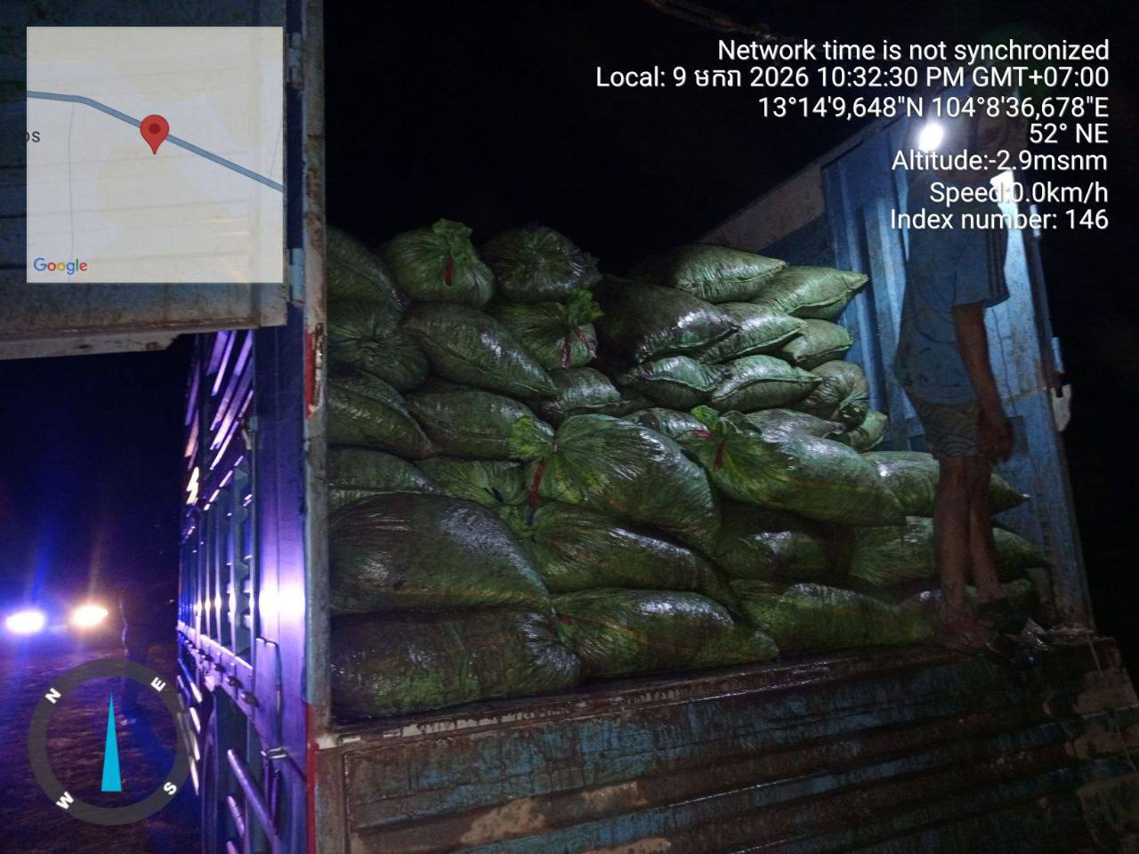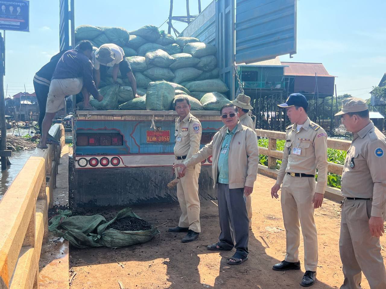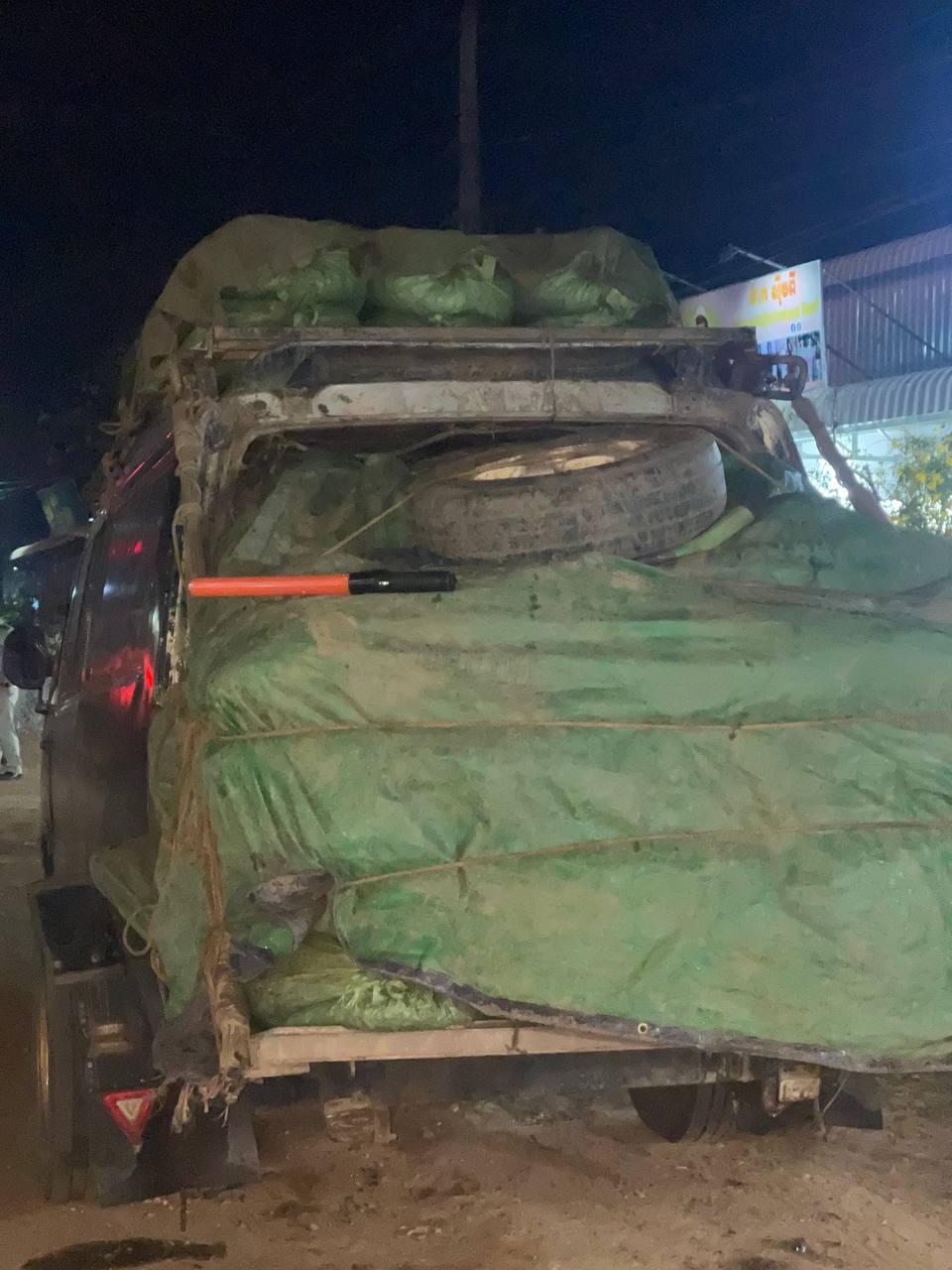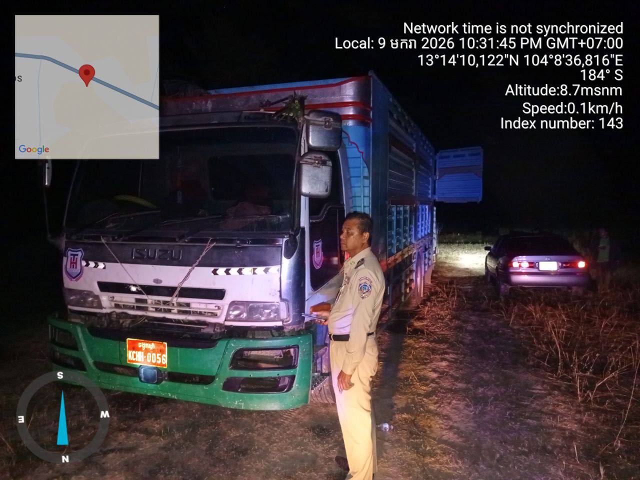 ទី២.រថយន្តម៉ាក អុីស៊ុយស៊ុយ (ISUZU) ពណ៌ផ្ទៃមេឃ ពាក់ស្លាក់លេខ ចង្កូតស្តាំ KCHH.0056 និងមានស្លាកលេខភ្នំពេញ 3B.0930 (មិនប្រក្រតី) នៅលើរថយន្តថែមទៀត ដឹកលៀសគ្មានលិខិតអនុញ្ញាតចំនួន ២១២៥០ គីឡូក្រាម (ម្ចាស់រថយន្តដាក់មេប្រុច គេចខ្លួនបាត់) ។
