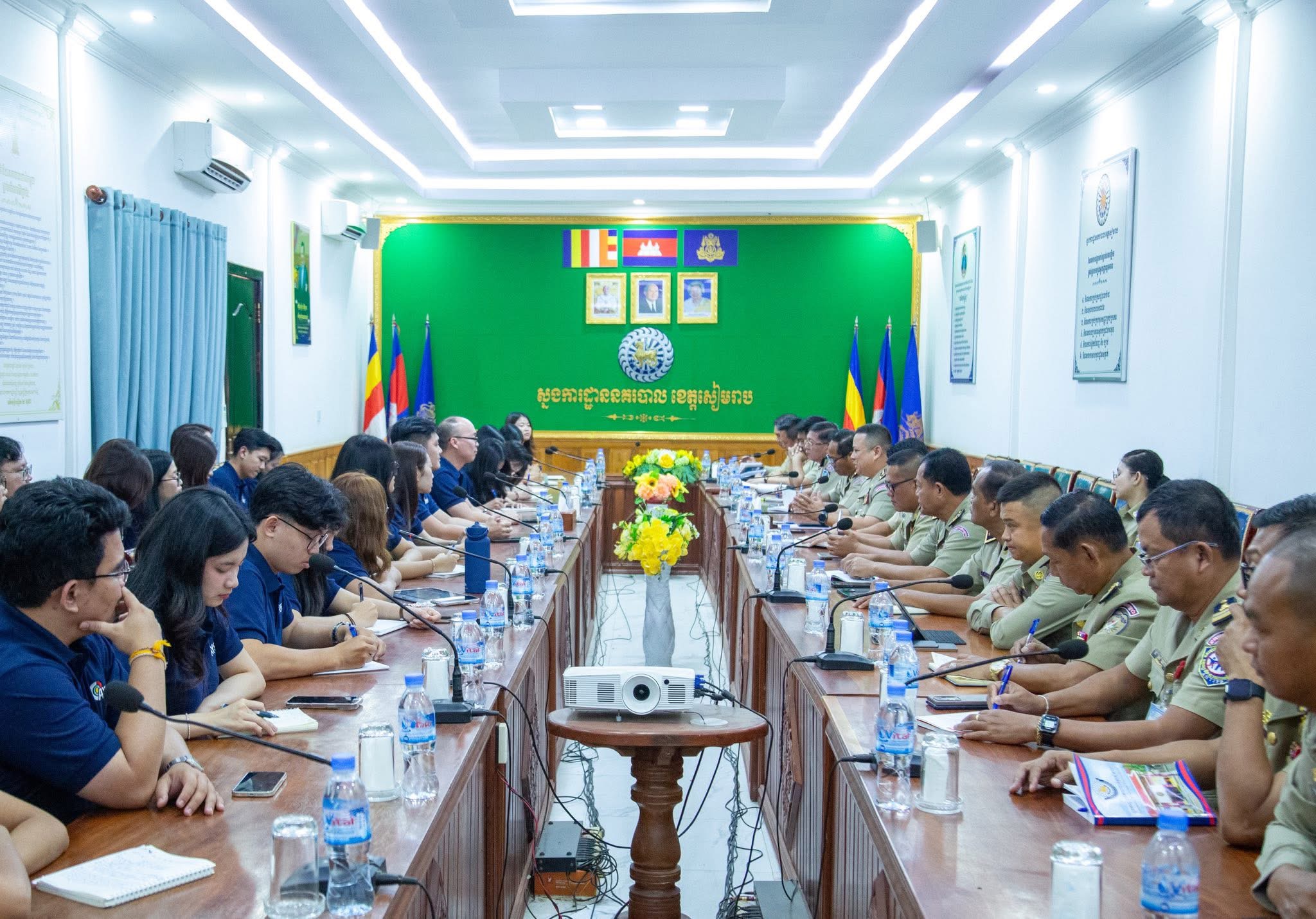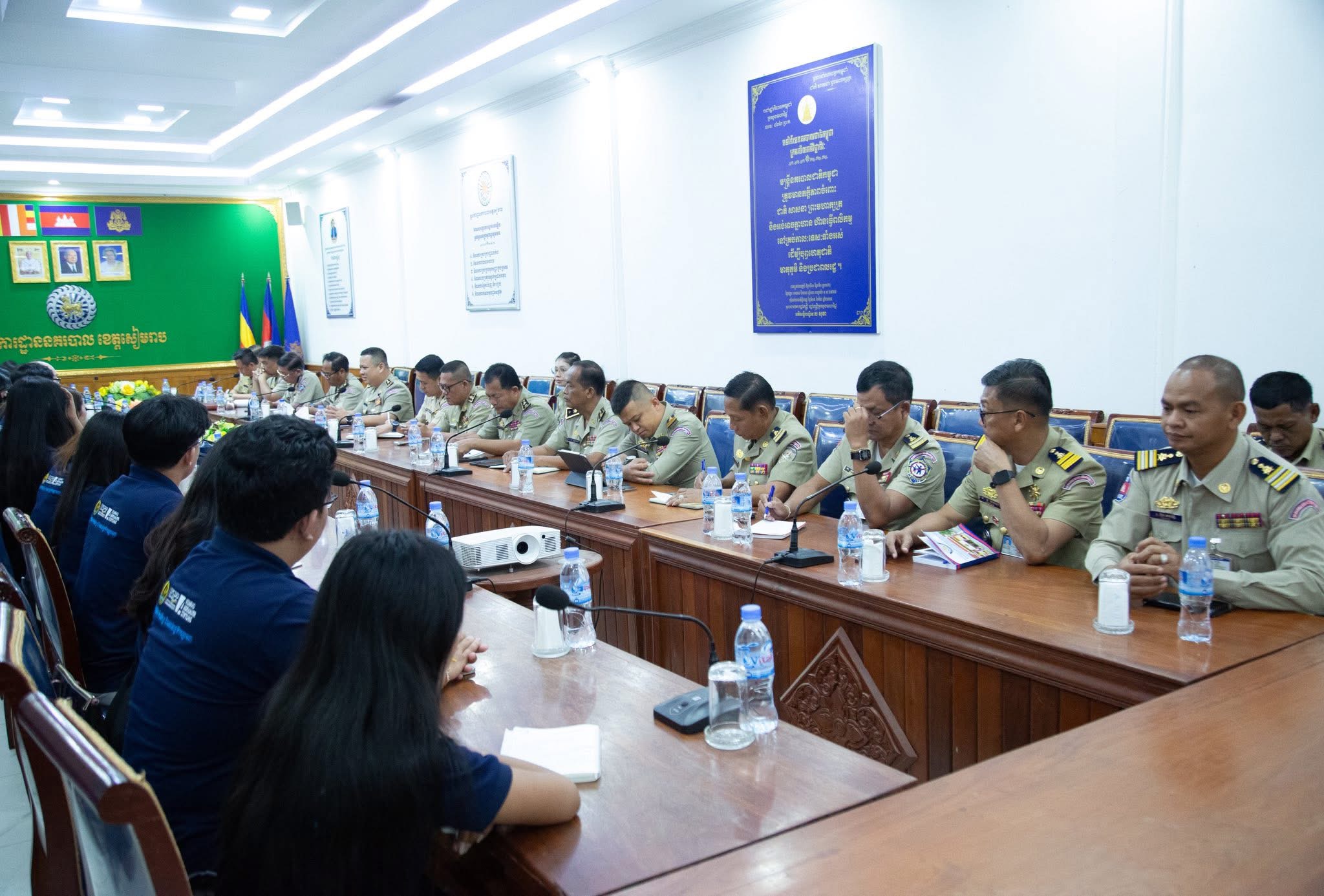សៀមរាប៖ នៅរសៀលថ្ងៃសុក្រ ៤រោច ខែមាឃ ឆ្នាំម្សាញ់ សប្តស័ក ព.ស ២៥៦៩ត្រូវនឹងថ្ងៃទី៦ ខែកុម្ភៈ ឆ្នាំ២០២៦ វេលាម៉ោង១៤និង០០ នាទី នៅសាលប្រជុំស្នងការដ្ឋាននគរបាលខេត្ត ដោយអនុវត្តតាមអនុសាសន៍ណែនាំដ៏ខ្ពង់ខ្ពស់របស់ ឯកឧត្ដម នាយឧត្ដមសេនីយ៍ ស ថេត អគ្គស្នងការនគរបាលជាតិ លោកឧត្ដមសេនីយ៍ទោ ហួត សុធី ស្នងការ នៃស្នងការដ្ឋាននគរបាលខេត្តសៀមរាប បានដឹកនាំគណៈស្នងការ ទទួលជួបសំណេះសំណាល និងសម្តែងការគួរសមជាមួយក្រុមបញ្ញវន្តក្មេងអាដិន–ណៅអ៊ែរ ((Adenauer Young Scholars for Excellence ) របស់ មូលនិធិខុនរ៉ាដអាដិណៅអ៊ែរ ( (Konrad-Adenauer-Stiftung ) ។