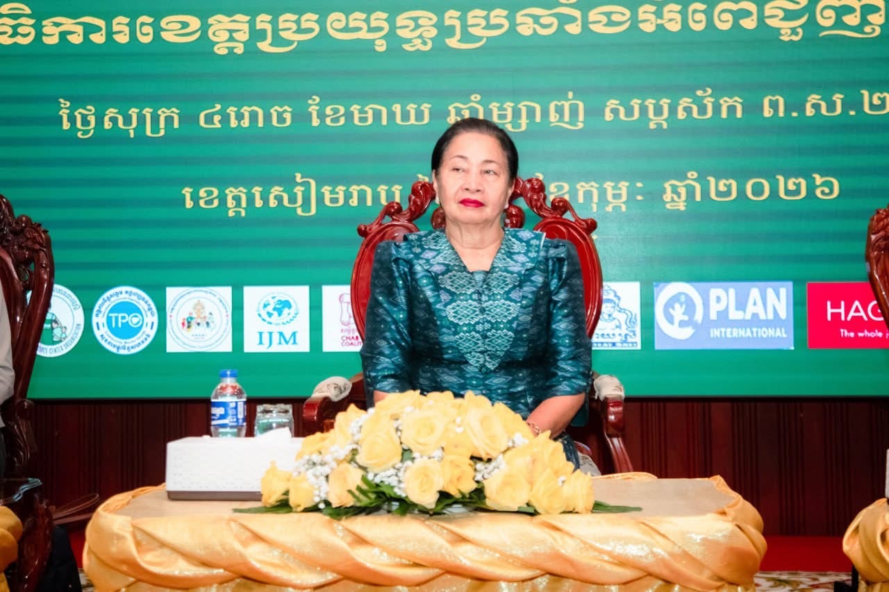 ក្នុងកិច្ចប្រជុំបូកសរុបលទ្ធផលការងារឆ្នាំ២០២៥ និងលើកទិសដៅបន្តឆ្នាំ២០២៦ របស់គណៈកម្មាធិការប្រយុទ្ធប្រឆាំងអំពើជួញដូរមនុស្សខេត្តសៀមរាប (គ.ខ.ប.ជ) កាលពីថ្ងៃទី៦ ខែកុម្ភៈ ឆ្នាំ២០២៦ លោកជំទាវ ជូ ប៊ុនអេង រដ្ឋលេខាធិការ