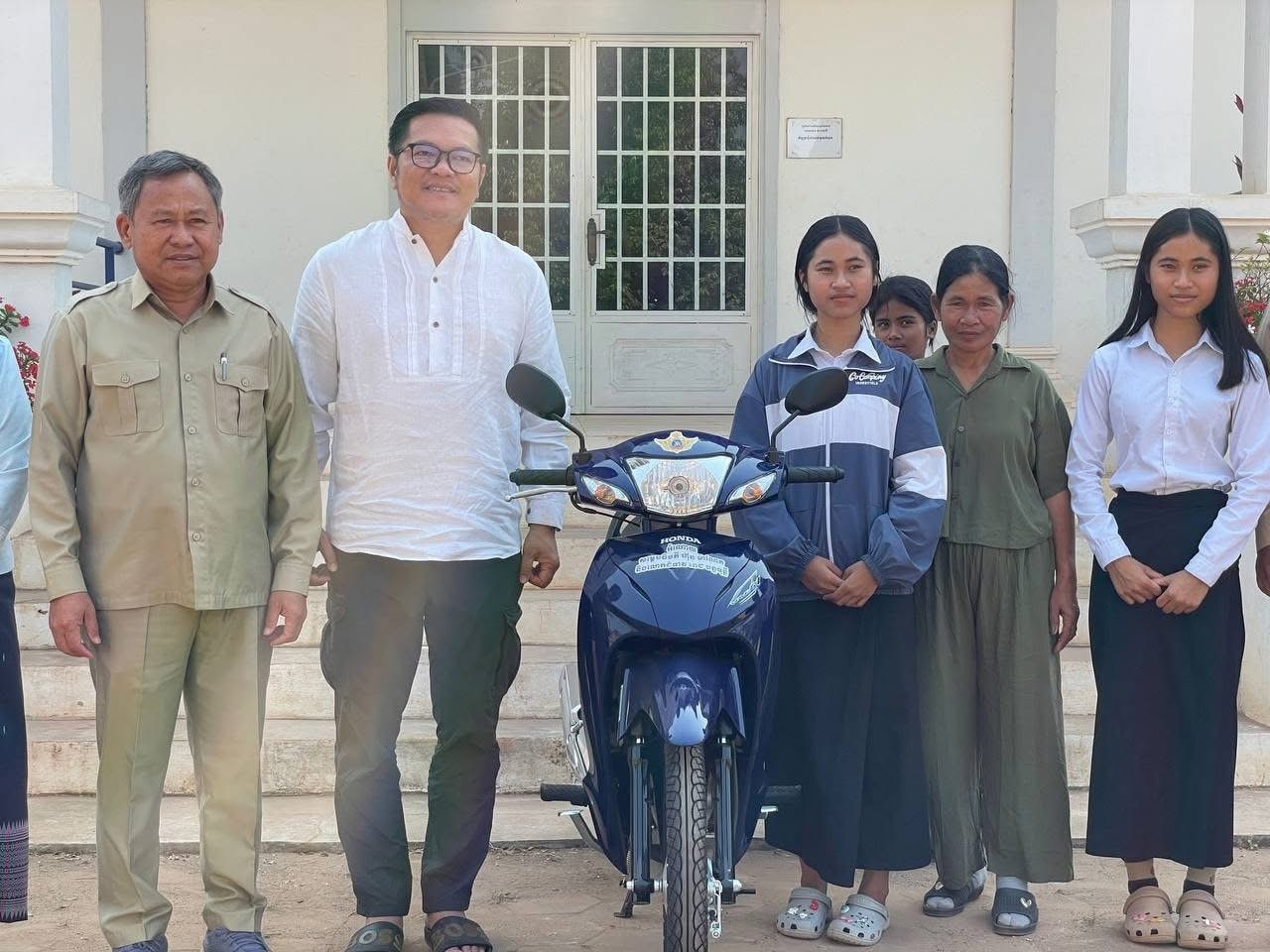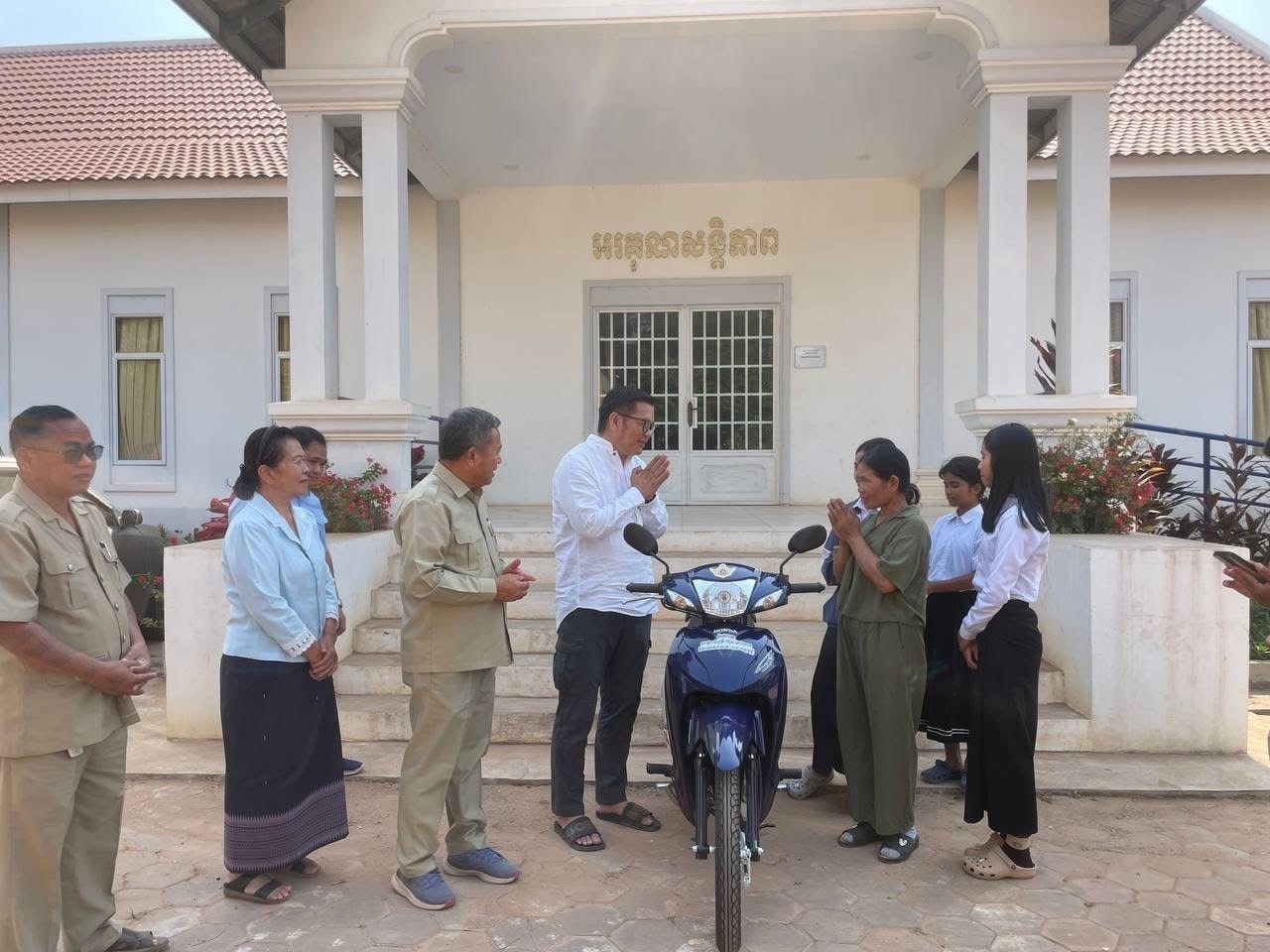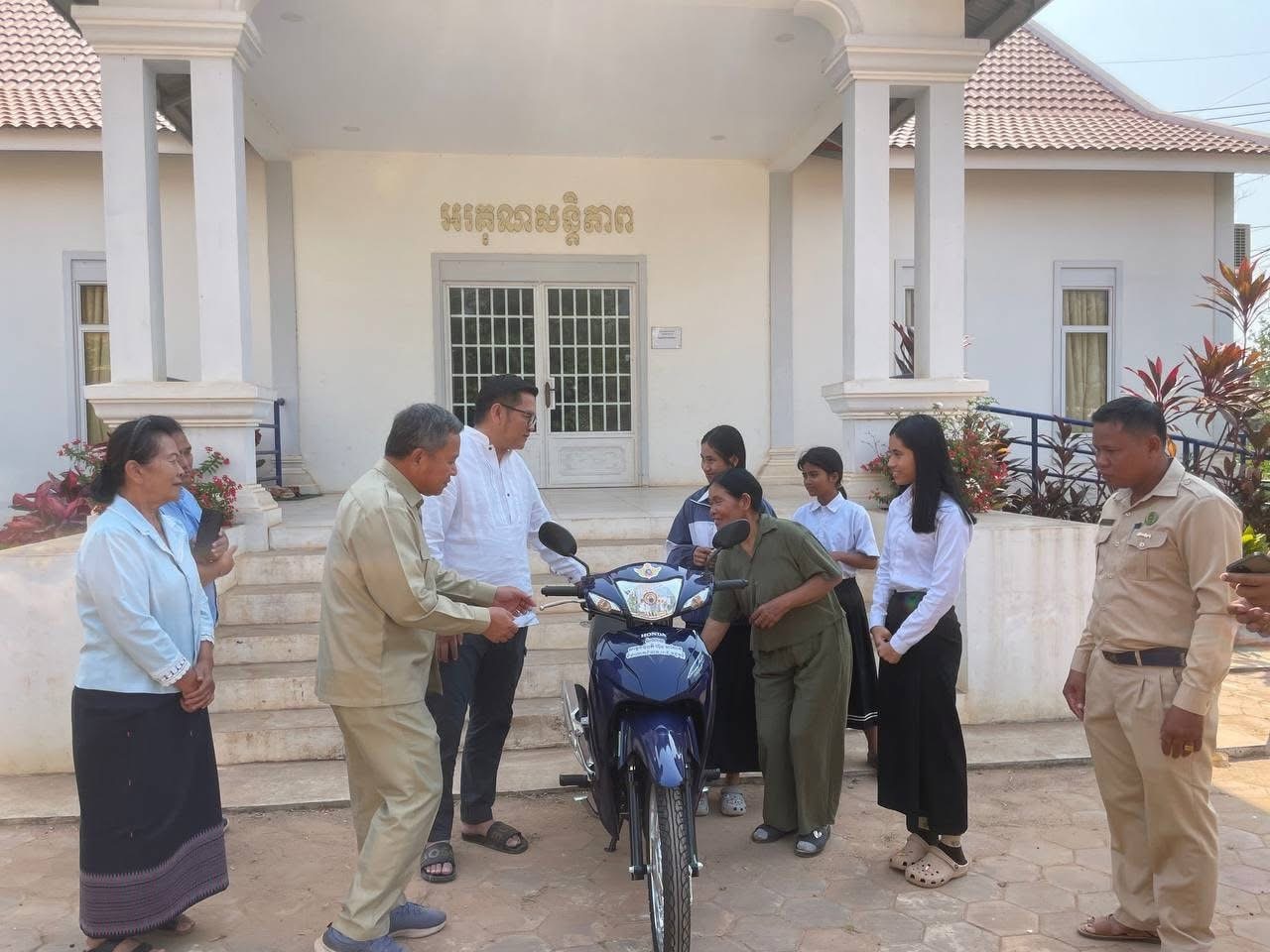 សៀមរាប៖ ម៉ូតូមួយគ្រឿងដែលជាអំណោយដ៏ថ្លៃថ្លាសម្តេចមហាបវរធិបតី ហ៊ុន ម៉ាណែត និងលោកជំទាវបណ្ឌិត ពេជ ចន្ទមុន្នី ហ៊ុនម៉ាណែត ឆ្លើយតបតាមសំណើរបស់គ្រួសារយោធិនឈ្មោះ រ៉ា ទី ស្នើសុំម៉ូតូមួយគ្រឿង ដើម្បីសម្រួលដល់មធ្យោបាយធ្វើដំណើរដល់ក្មួយស្រីឈ្មោះ ប៉ុក ស្រីពៅ សម្រាប់ទៅសាលារៀន នាថ្ងៃទី១៦ ខែកុម្ភៈ ឆ្នាំ២០២៦ នៅសាលាស្រុកសូទ្រនិគម លោក សំកុល សុចិត្រា អភិបាលរងខេត្ត តំណាងឯកឧត្តមប្រាក់ សោភ័ណ អភិបាល នៃគណៈអភិបាលខេត្ត បានប្រគល់ម៉ូតូមួយគ្រឿង ត្រូវបានប្រគល់ជូនក្មួយស្រី ប៉ុក ស្រីពៅ ដែលជាគ្រួសាររបស់យោធិនឈ្មោះ រ៉ា ទី ដែលបានពលីនៅសមរភូមិនៅខ្សែបន្ទាត់ ព្រំដែន។